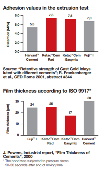 - Gắn inlay, onlay, mão, và cầu được làm bằng kim loại, sườn kim loại, composite hoặc sứ có độ cứng cao, miễn là chúng thích hợp cho việc gắn xi măng thông thường